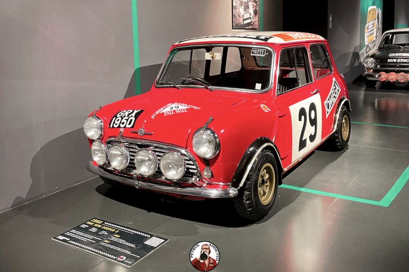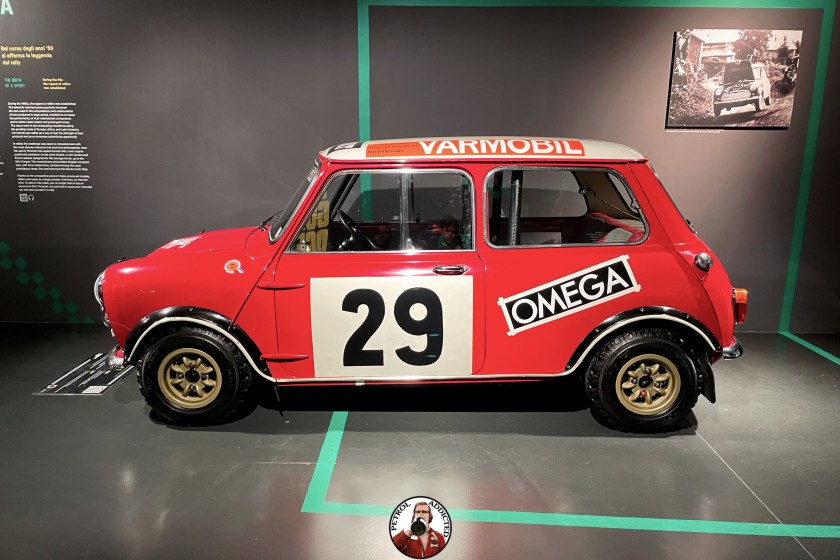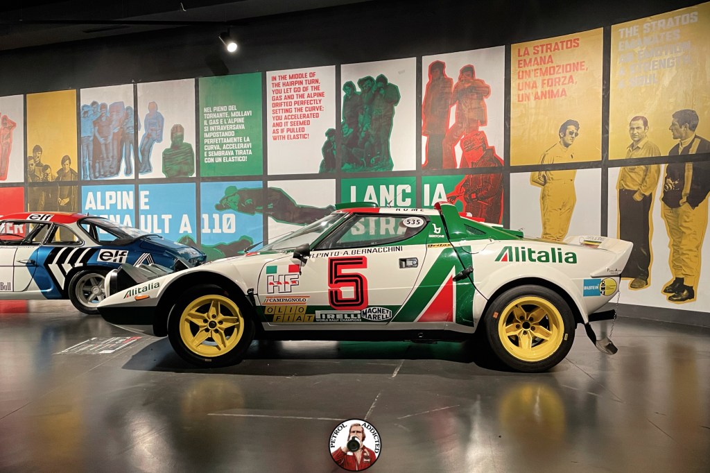 Si parte dagli anni ’60 con la BMC Mini Cooper S (1966), la Ford Cortina Lotus (1966)e la Ford Escort RS Miki (1969), passando di sala in sala si attraversano gli anni ’70, con la Porche 911 st (1970), la Lancia Fulvia Coupè HF 1.6 (1970), la Fiat 124 Spider (1971), l’Alpine Renault A110 (1973), la Lancia Stratos (1976), la Fiat 131 Abarth Gruppo 4 (1978).