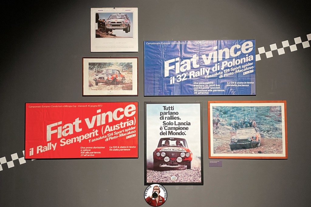 Di rilievo il rarissimo esemplare di Fiat X1/9 Abarth prototipo, al cui sviluppo Gino Macaluso ha partecipato attivamente in qualità di capo progetto su incarico dell’ingegner Aurelio Lampredi per la Squadra Corse FIAT. Una vettura studiata specificatamente per i rally, dismessa ancor prima di vedere la produzione di serie e l’omologazione in Gruppo 4. Un cambio strategico di Fiat decretò la fine del progetto, successivo al Giro d’Italia automobilistico del 1974, in cui Gino Macaluso aveva corso accanto a Clay Regazzoni, proprio a bordo della X1/9 in mostra.