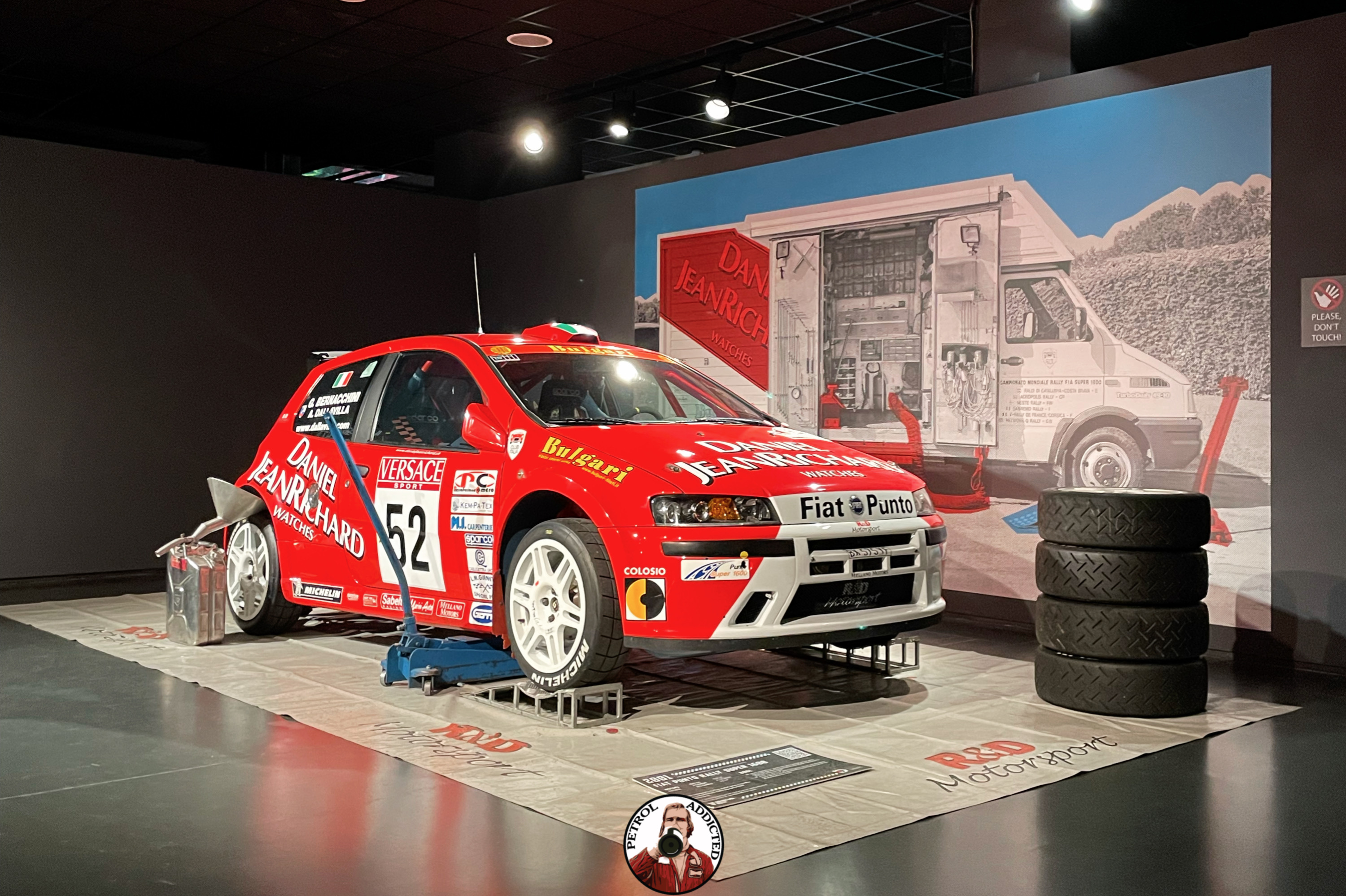 Outsider del percorso espositivo, la Fiat Punto S1600 vincitrice del Rally di Sanremo nel 2001, punta di diamante della squadra corse fondata da Gino Macaluso per partecipare al Junior World Rally Championship.