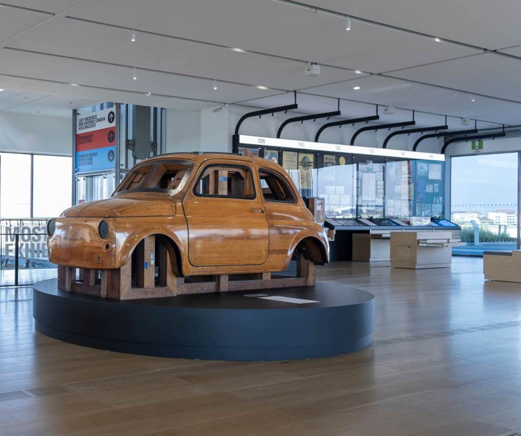 Lo spazio racconta la storia del brand intrecciandola a quella del Lingotto, leggendaria fabbrica e luogo iconico per la produzione industriale del marchio nella città di Torino, progettato da Giacomo Matté Trucco negli anni Venti e ristrutturato da Renzo Piano negli anni Novanta. Grazie all’utilizzo di un display interattivo, l’esposizione si dirama in più percorsi tematici – Car Design, Architecture, Society e Kids – dando la possibilità ai visitatori di immergersi nell’universo FIAT a 360°. All’interno del museo, FIAT è la protagonista delle narrazioni, le quali vanno dagli albori del marchio fino alle più recenti evoluzioni. Casa FIAT si muove simbolicamente intorno alla 500 Master Model in legno, con un percorso espositivo che ha inizio con l’anno di fondazione dell’azienda, il 1899, quando i fondatori si riunirono per sottoscrivere l’atto di Costituzione della Società Anonima Fabbrica Italiana di Automobili – Torino, da cui deriva l’acronimo FIAT.